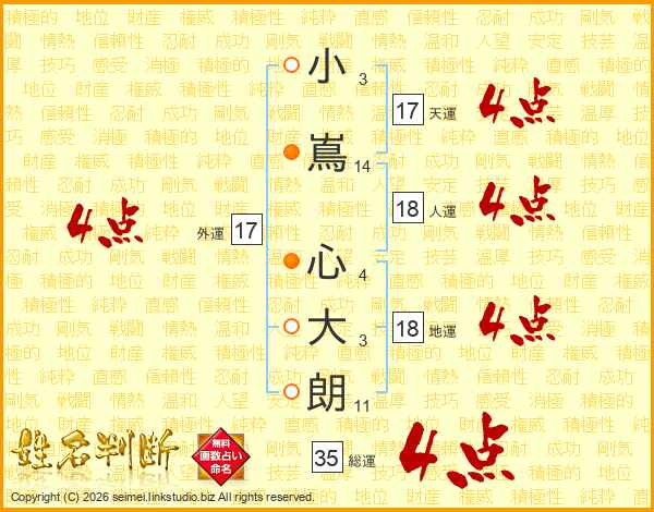 小嶌心大朗さんの天運は17画の4点!