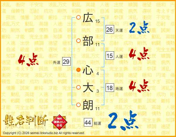 広部心大朗さんの天運は26画の2点!