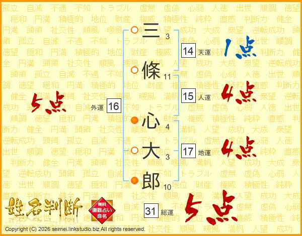 三(3画)條(11画) 心(4画)大(3画)郎(10画)