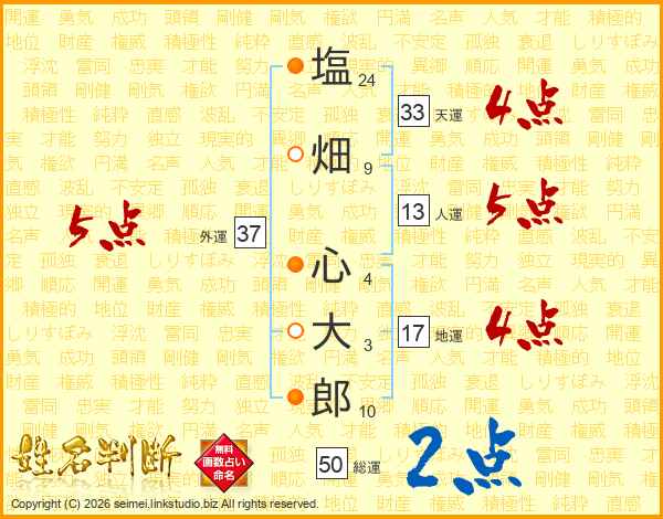 塩畑心大郎さんの外運は37画の5点!