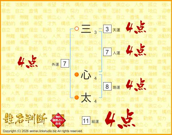 三心太さんの総運は11画の4点!