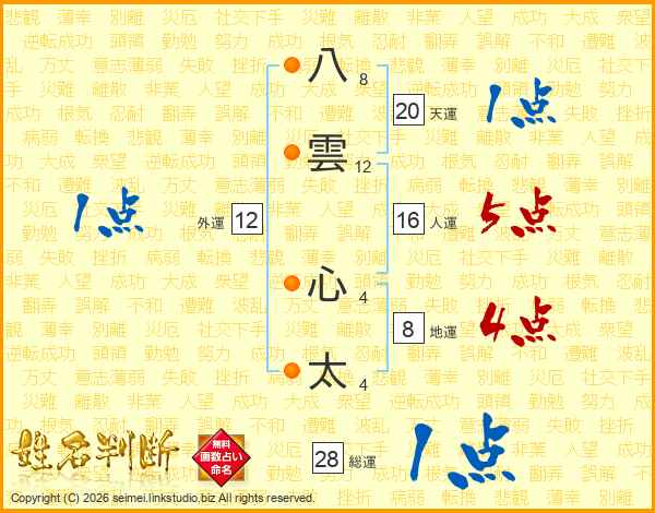 八雲心太さんの総運は28画の1点!