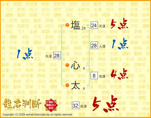 塩心太さんの総運は32画の5点!