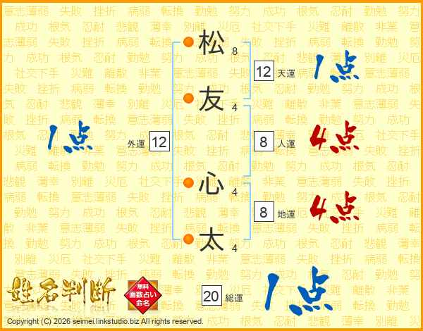 松(8画)友(4画) 心(4画)太(4画)