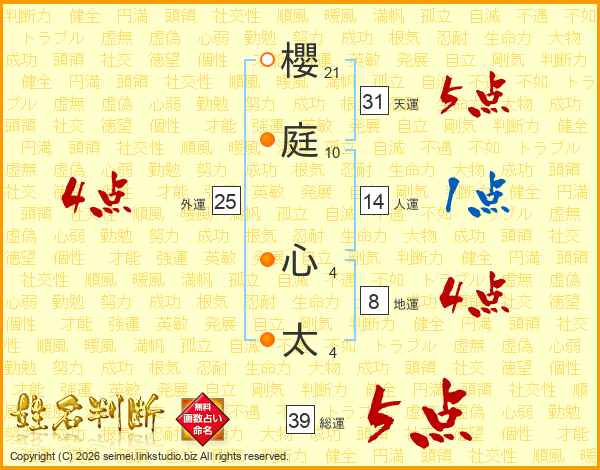 櫻庭心太さんの総運は39画の5点!