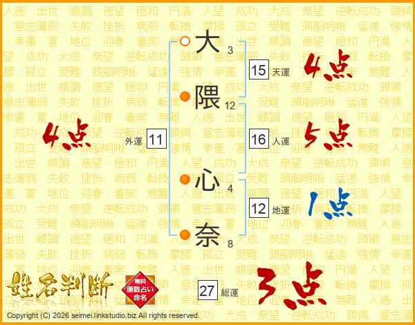大隈心奈さんの総運は27画の3点!