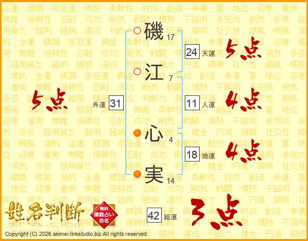 磯江心実さんの天運は24画の5点!