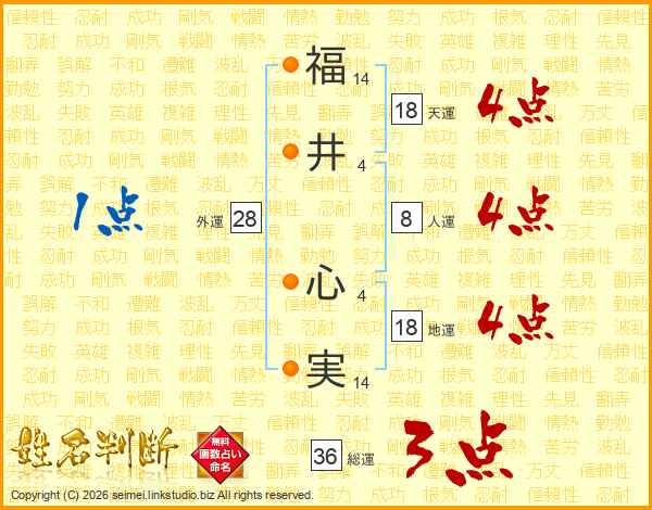 福(14画)井(4画) 心(4画)実(14画)