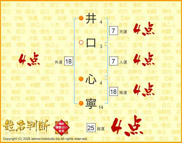 井(4画)口(3画) 心(4画)寧(14画)