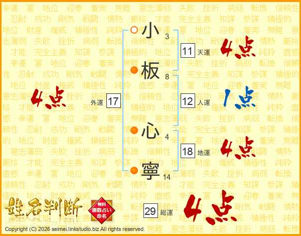 小板心寧さんの総運は29画の4点!