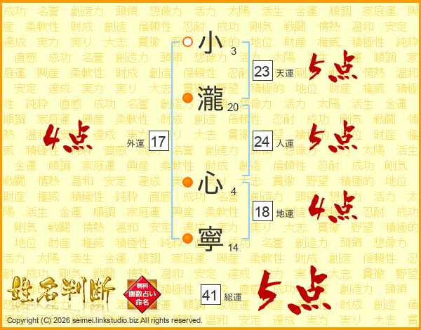 小(3画)瀧(20画) 心(4画)寧(14画)