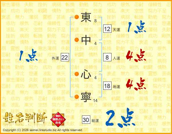 東中心寧さんの総運は30画の2点!