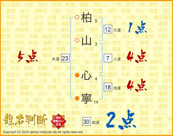 柏(9画)山(3画) 心(4画)寧(14画)