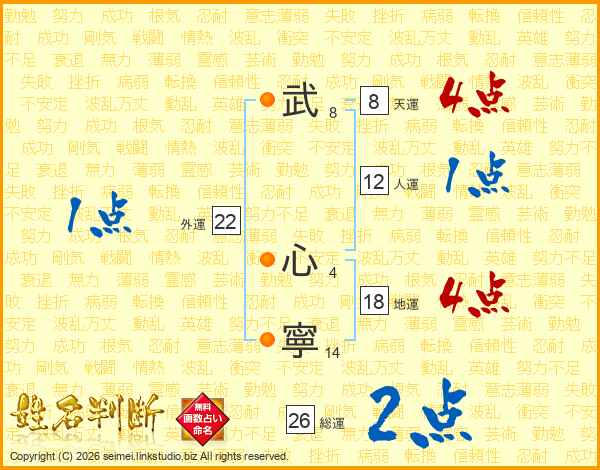 武(8画) 心(4画)寧(14画)