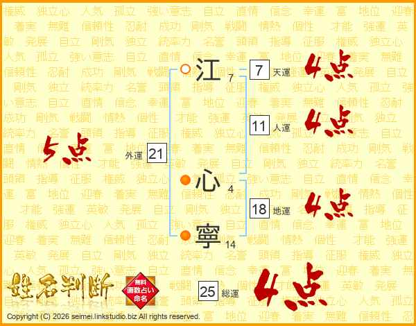 江心寧さんの総運は25画の4点!