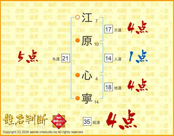 江原心寧さんの総運は35画の4点!