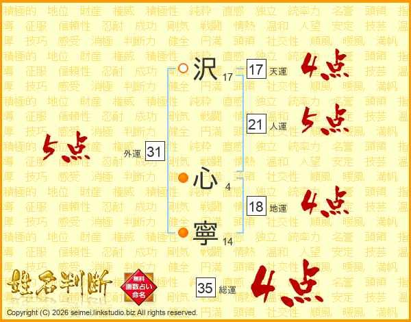 沢心寧さんの総運は35画の4点!