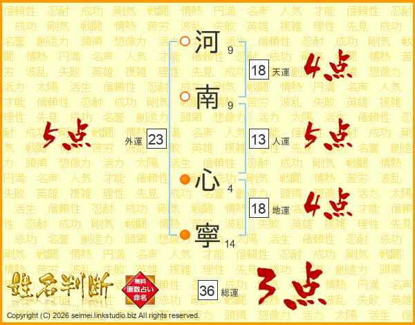 河南心寧さんの天運は18画の4点!