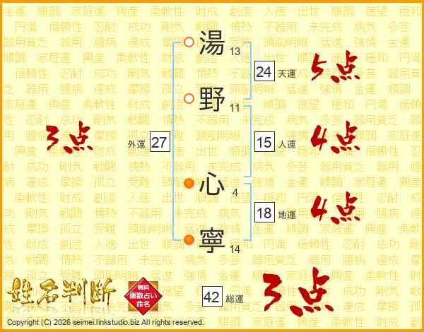 湯野心寧さんの地運は18画の4点!