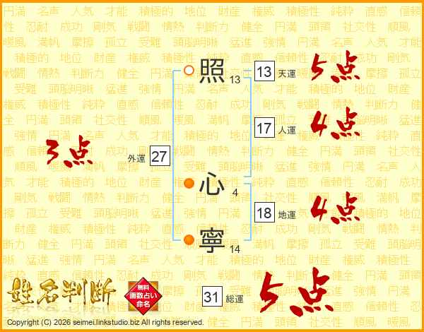 照心寧さんの総運は31画の5点!
