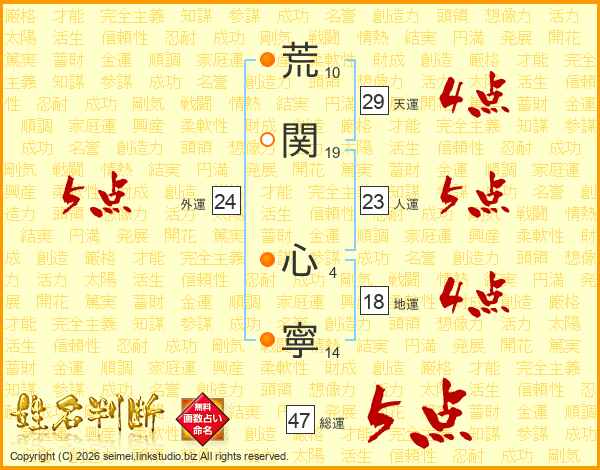 荒関心寧さんの総運は47画の5点!