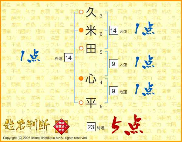 久米田心平さんの天運は14画の1点!