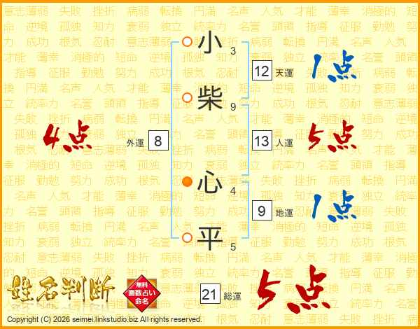 小柴心平さんの総運は21画の5点!