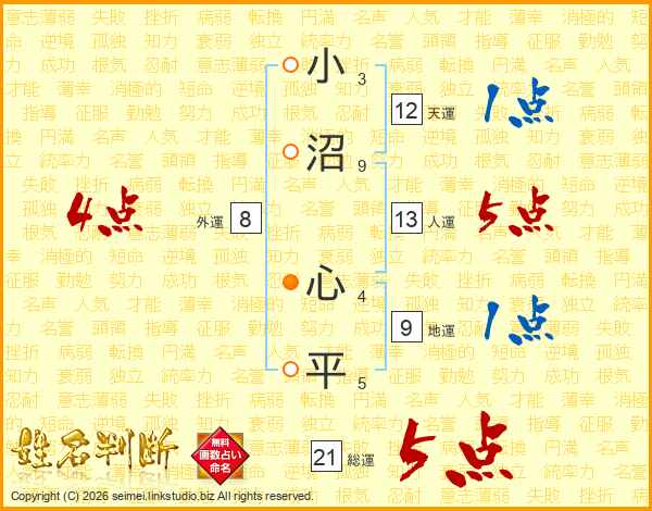 小沼心平さんの総運は21画の5点!