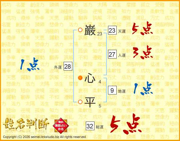 巌心平さんの総運は32画の5点!