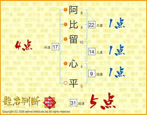 阿(8画)比(4画)留(10画) 心(4画)平(5画)