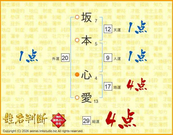 坂本心愛さんの総運は29画の4点!