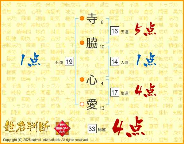 寺脇心愛さんの総運は33画の4点!