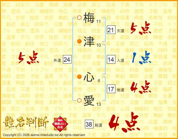 梅津心愛さんの総運は38画の4点!