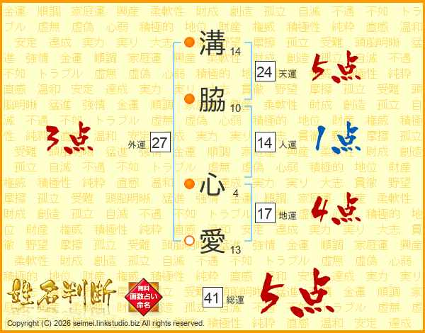 溝脇心愛さんの総運は41画の5点!