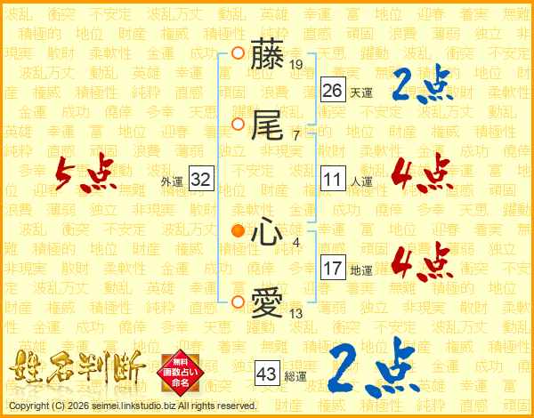 藤尾心愛さんの外運は32画の5点!