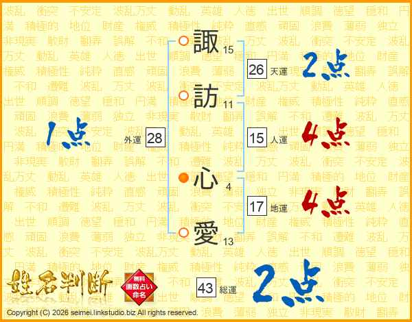 諏訪心愛さんの天運は26画の2点!