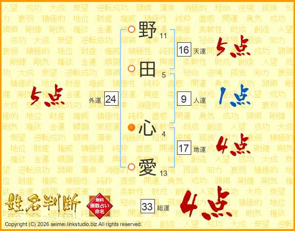 野田心愛さんの天運は16画の5点!