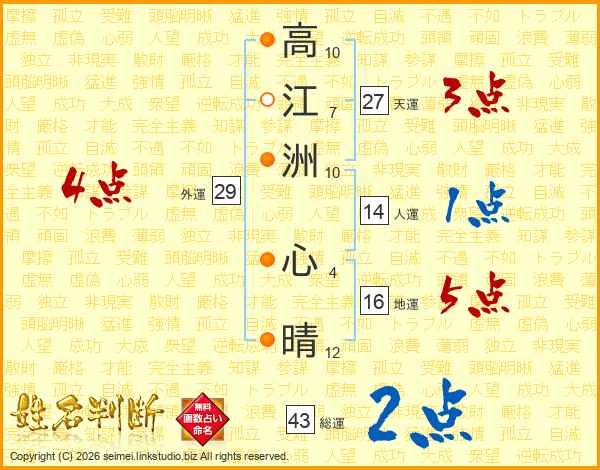 高江洲心晴さんの総運は43画の2点!