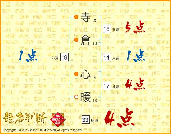 寺倉心暖さんの総運は33画の4点!