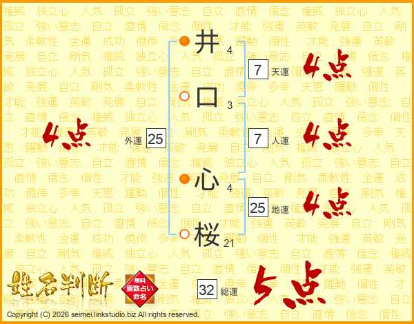 井(4画)口(3画) 心(4画)桜(21画)