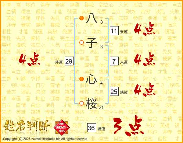八子心桜さんの天運は11画の4点!