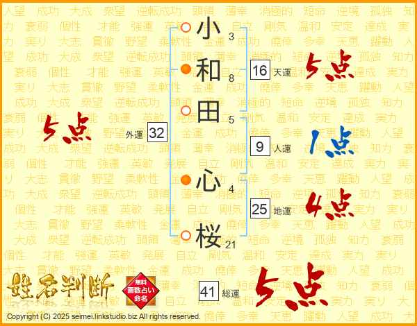 小(3画)和(8画)田(5画) 心(4画)桜(21画)
