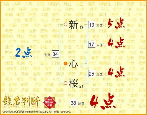 新心桜さんの総運は38画の4点!
