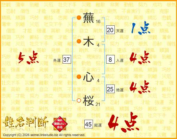 蕪木心桜さんの総運は45画の4点!