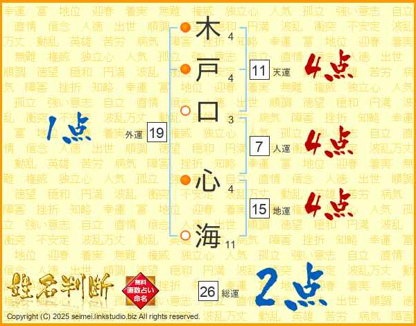 木戸口心海さんの総運は26画の2点!