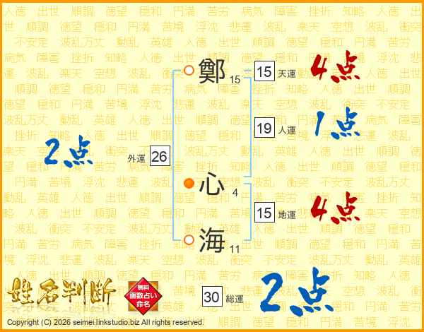 鄭心海さんの総運は30画の2点!