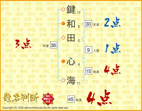 鍵和田心海さんの総運は45画の4点!