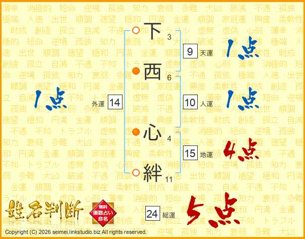 下西心絆さんの総運は24画の5点!