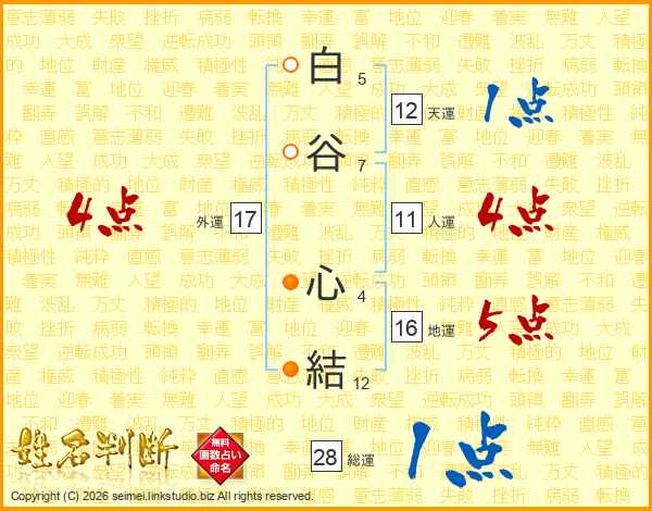 白谷心結さんの外運は17画の4点!