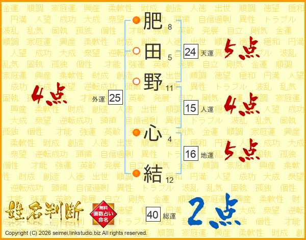 肥田野心結さんの総運は40画の2点!
